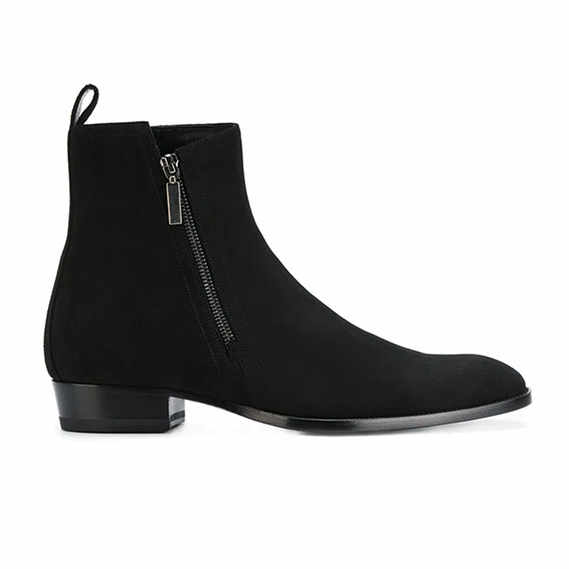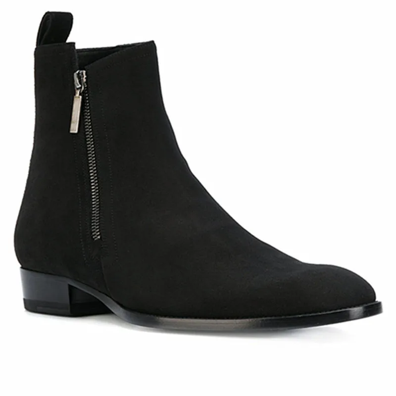 Buy Zipper cow leather black classic: travel banquet men boots summer autumn All-matching safety pointe