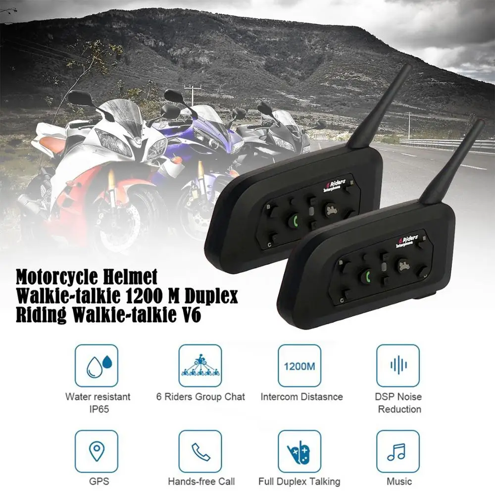 Discount 2pcs Motorcycle Helmet Walkie-talkie 1200 M Duplex Riding Walkie-talkie V6Pro 1200M for Motorcycle