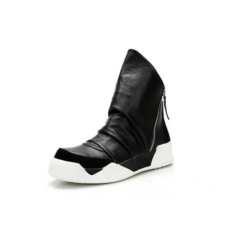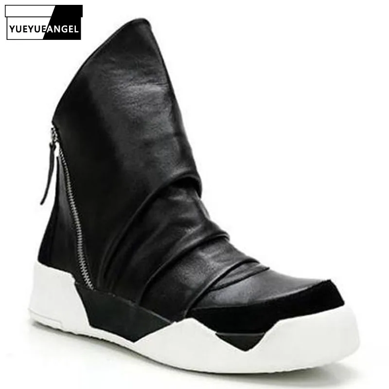 Get 2019 New Winter Gothic Hip Hop Thick Platform Ankle Boots Men Leather Shoes Work Zip High Top Genui
